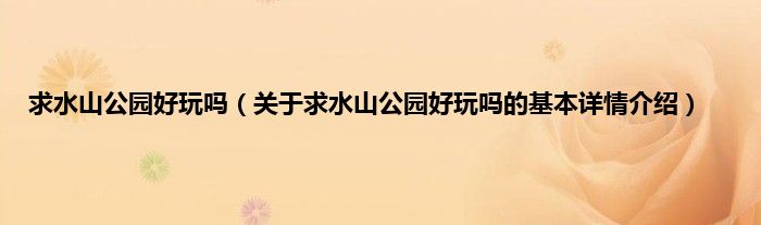 本文关于求水山公园好玩吗的基本详情介绍就讲解完毕,希望对大家有所帮助。