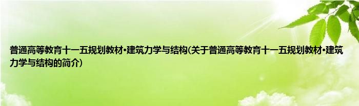 本文关于普通高等教育十一五规划教材·建筑力学与结构的简介就讲解完毕,希望对大家有所帮助。