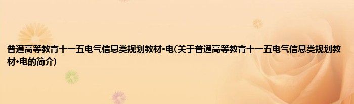 本文关于普通高等教育十一五电气信息类规划教材·电的简介就讲解完毕,希望对大家有所帮助。