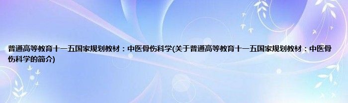 本文关于普通高等教育十一五国家规划教材:中医骨伤科学的简介就讲解完毕,希望对大家有所帮助。