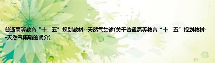 本文关于普通高等教育“十二五”规划教材--天然气集输的简介就讲解完毕,希望对大家有所帮助。