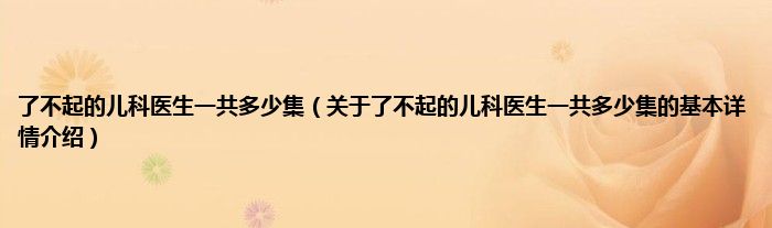 本文关于了不起的儿科医生一共多少集的基本详情介绍就讲解完毕,希望对大家有所帮助。
