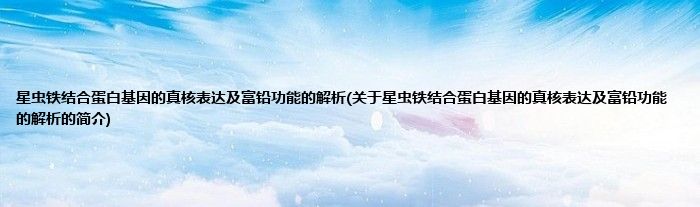大家好,星虫铁结合蛋白基因的真核表达及富铅功能的解析,关于星虫铁结合蛋白基因的真核表达及富铅功能的解析的简介很多人还不知道,现在让我们一起来看看吧!