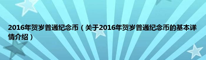 本文关于2016年贺岁普通纪念币的基本详情介绍就讲解完毕,希望对大家有所帮助。