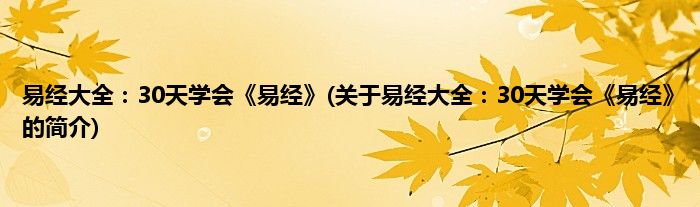 本文关于易经大全:30天学会《易经》的简介就讲解完毕,希望对大家有所帮助。