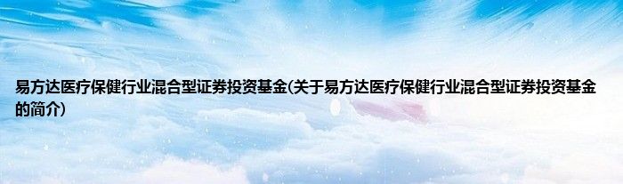 大家好,易方达医疗保健行业混合型证券投资基金,关于易方达医疗保健行业混合型证券投资基金的简介很多人还不知道,现在让我们一起来看看吧!