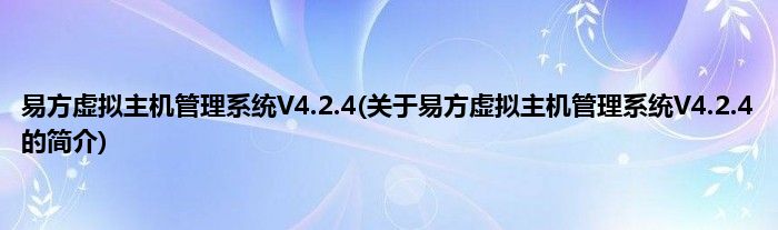 大家好,易方虚拟主机管理系统V4.2.4,关于易方虚拟主机管理系统V4.2.4的简介很多人还不知道,现在让我们一起来看看吧!