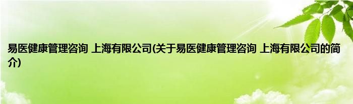 本文关于易医健康管理咨询 上海有限公司的简介就讲解完毕,希望对大家有所帮助。