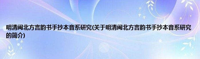 本文关于明清闽北方言韵书手抄本音系研究的简介就讲解完毕,希望对大家有所帮助。