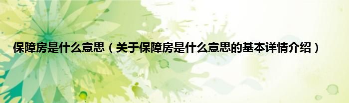 本文关于保障房是什么意思的基本详情介绍就讲解完毕,希望对大家有所帮助。