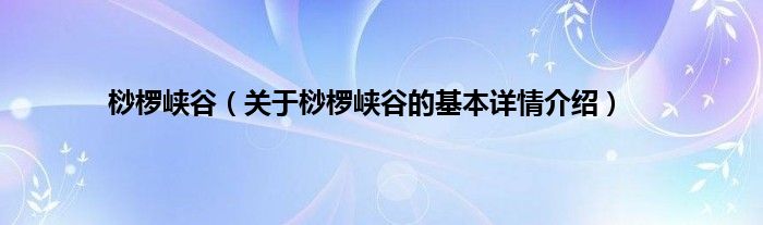 本文关于桫椤峡谷的基本详情介绍就讲解完毕,希望对大家有所帮助。
