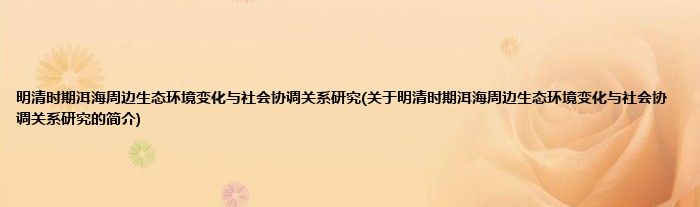 本文关于明清时期洱海周边生态环境变化与社会协调关系研究的简介就讲解完毕,希望对大家有所帮助。