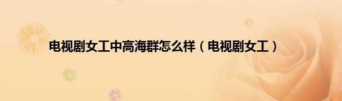 大家好,小问来为大家解答以上问题。电视剧女工中高海群怎么样,电视剧女工这个很多人还不知道,现在让我们一起来看看吧!