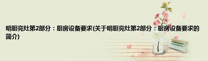 明厨亮灶第2部分:厨房设备要求(关于明厨亮灶第2部分:厨房设备要求的简介)