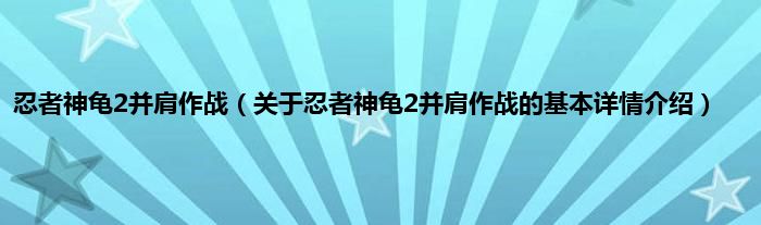 忍者神龟2并肩作战(关于忍者神龟2并肩作战的基本详情介绍)