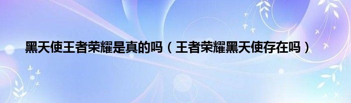 以上就是【黑天使王者荣耀是真的吗,王者荣耀黑天使存在吗】相关内容。