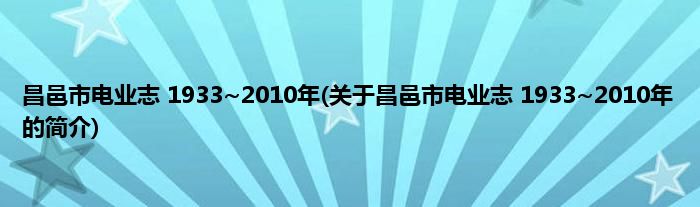 本文关于昌邑市电业志 1933~2010年的简介就讲解完毕,希望对大家有所帮助。