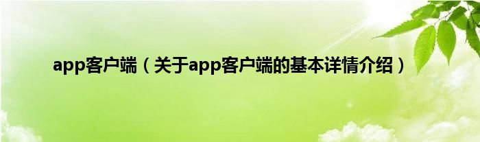 本文关于app客户端的基本详情介绍就讲解完毕,希望对大家有所帮助。
