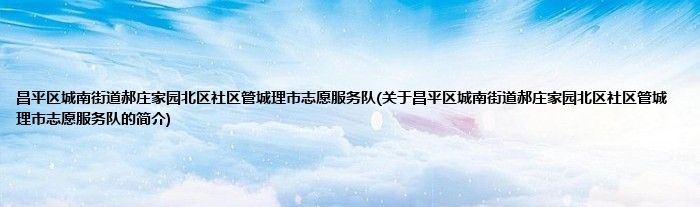 大家好,昌平区城南街道郝庄家园北区社区管城理市志愿服务队,关于昌平区城南街道郝庄家园北区社区管城理市志愿服务队的简介很多人还不知道,现在让我们一起来看看吧!
