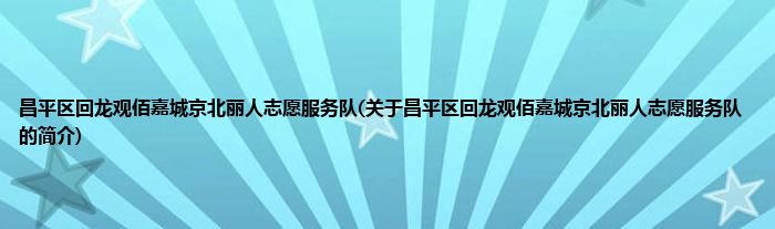 本文关于昌平区回龙观佰嘉城京北丽人志愿服务队的简介就讲解完毕,希望对大家有所帮助。