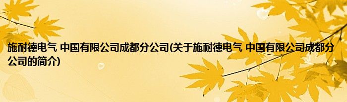 本文关于施耐德电气 中国有限公司成都分公司的简介就讲解完毕,希望对大家有所帮助。