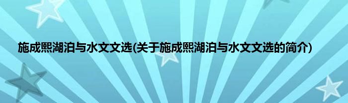 本文关于施成熙湖泊与水文文选的简介就讲解完毕,希望对大家有所帮助。