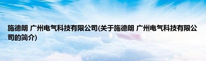 本文关于施德朗 广州电气科技有限公司的简介就讲解完毕,希望对大家有所帮助。