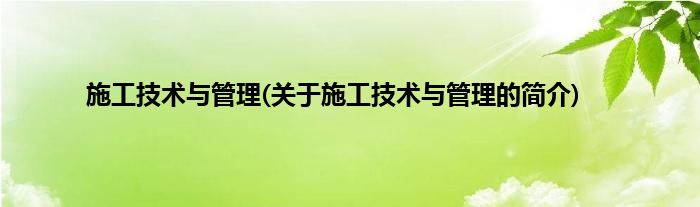 大家好,施工技术与管理,关于施工技术与管理的简介很多人还不知道,现在让我们一起来看看吧!