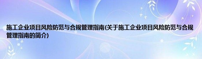 本文关于施工企业项目风险防范与合规管理指南的简介就讲解完毕,希望对大家有所帮助。