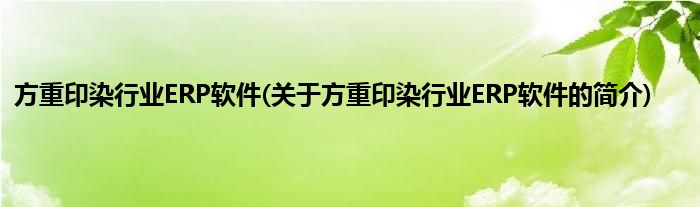 大家好,方重印染行业ERP软件,关于方重印染行业ERP软件的简介很多人还不知道,现在让我们一起来看看吧!