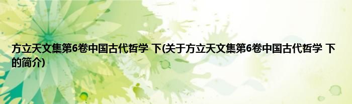 本文关于方立天文集第6卷中国古代哲学 下的简介就讲解完毕,希望对大家有所帮助。