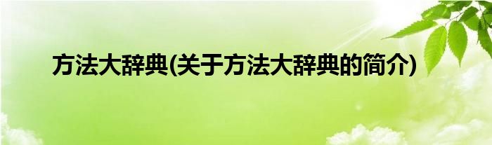 大家好,方法大辞典,关于方法大辞典的简介很多人还不知道,现在让我们一起来看看吧!