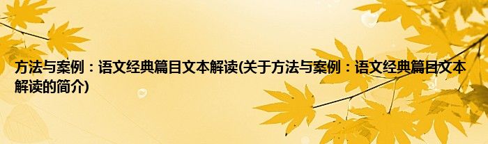 本文关于方法与案例:语文经典篇目文本解读的简介就讲解完毕,希望对大家有所帮助。