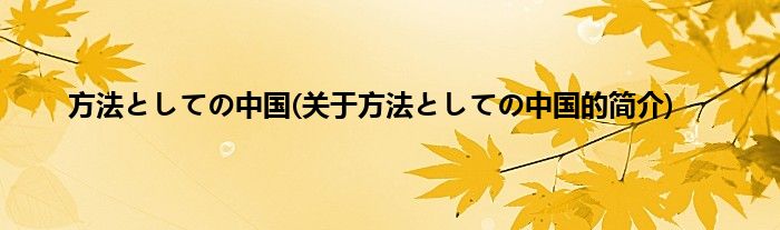本文关于方法としての中国的简介就讲解完毕,希望对大家有所帮助。