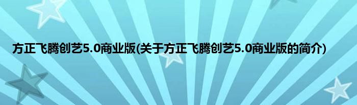 本文关于方正飞腾创艺5.0商业版的简介就讲解完毕,希望对大家有所帮助。