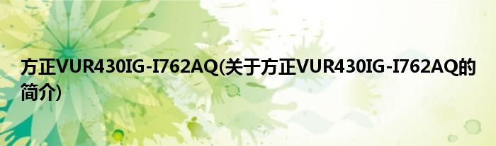 方正VUR430IG-I762AQ(关于方正VUR430IG-I762AQ的简介)