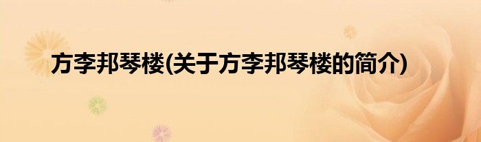 大家好,方李邦琴楼,关于方李邦琴楼的简介很多人还不知道,现在让我们一起来看看吧!