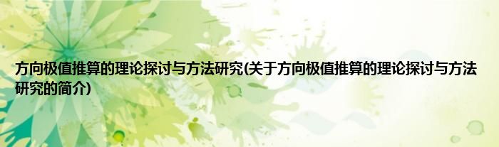 大家好,方向极值推算的理论探讨与方法研究,关于方向极值推算的理论探讨与方法研究的简介很多人还不知道,现在让我们一起来看看吧!