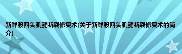 1、 新鲜股四头肌腱断裂修复术是指用于股四头肌腱断裂的治疗的手术。