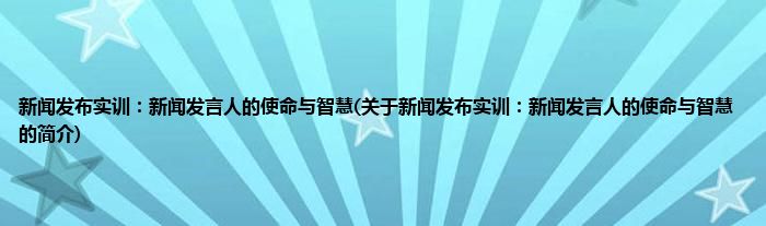 本文关于新闻发布实训:新闻发言人的使命与智慧的简介就讲解完毕,希望对大家有所帮助。