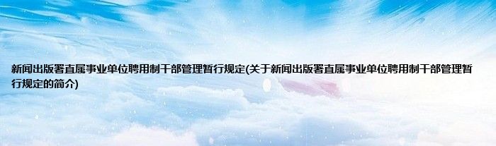 本文关于新闻出版署直属事业单位聘用制干部管理暂行规定的简介就讲解完毕,希望对大家有所帮助。