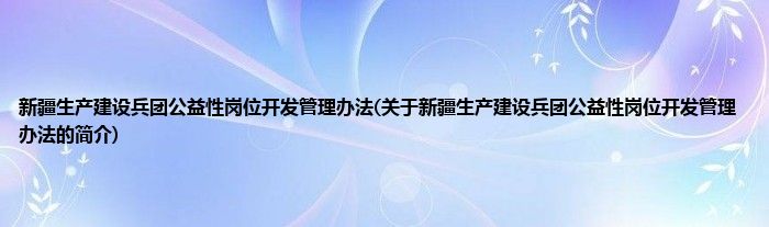新疆生产建设兵团公益性岗位开发管理办法(关于新疆生产建设兵团公益性岗位开发管理办法的简介)