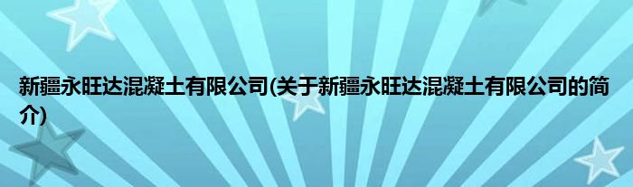 新疆永旺达混凝土有限公司(关于新疆永旺达混凝土有限公司的简介)