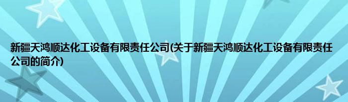 大家好,新疆天鸿顺达化工设备有限责任公司,关于新疆天鸿顺达化工设备有限责任公司的简介很多人还不知道,现在让我们一起来看看吧!