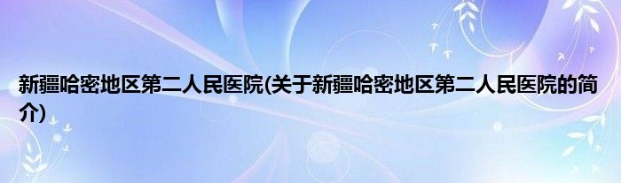 大家好,新疆哈密地区第二人民医院,关于新疆哈密地区第二人民医院的简介很多人还不知道,现在让我们一起来看看吧!