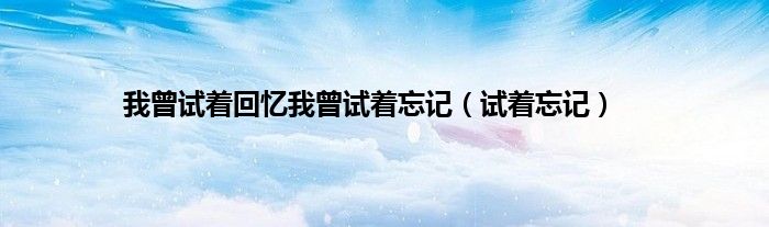 大家好,小问来为大家解答以上问题。我曾试着回忆我曾试着忘记,试着忘记这个很多人还不知道,现在让我们一起来看看吧!