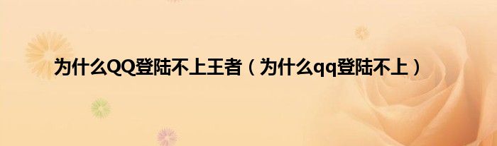 以上就是【为什么QQ登陆不上王者,为什么qq登陆不上】相关内容。