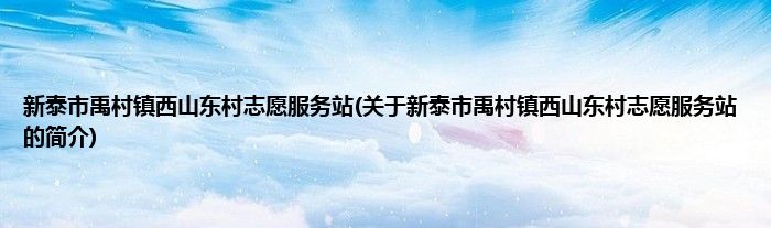 本文关于新泰市禹村镇西山东村志愿服务站的简介就讲解完毕,希望对大家有所帮助。