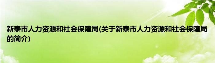 大家好,新泰市人力资源和社会保障局,关于新泰市人力资源和社会保障局的简介很多人还不知道,现在让我们一起来看看吧!