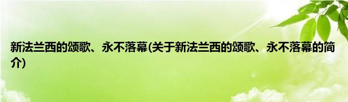 本文关于新法兰西的颂歌、永不落幕的简介就讲解完毕,希望对大家有所帮助。